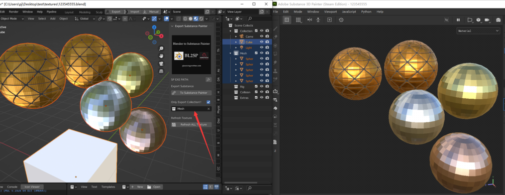 2.Automatic Save the SP file and export the Texture at the Blender File same Folder