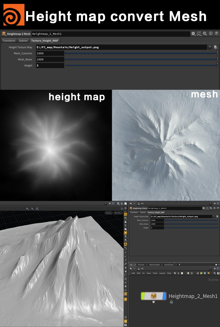 Height map to convert Mesh v1.1(Houdini)